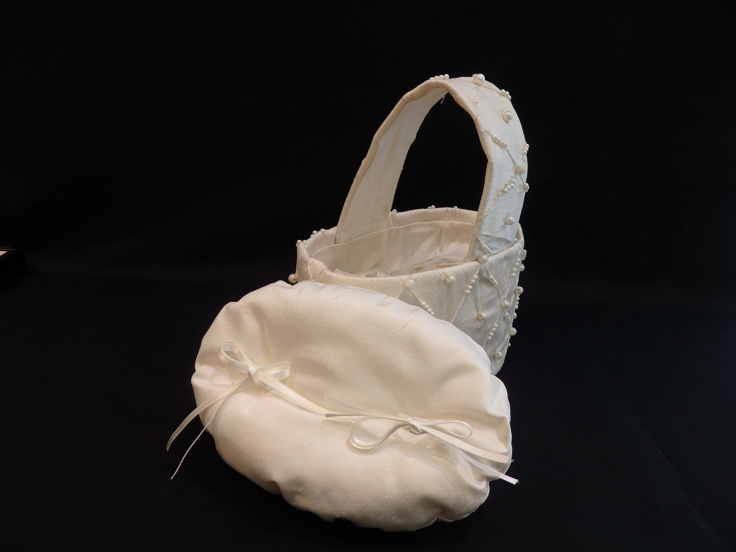 バッグは上部が巾着の様になっており、巾着部分をたたんだ上にリングピローが内蔵できる様に作られています。大きさは楕円の直径が18㎝×11.5㎠で深さ9㎝です。取っ手の部分の幅は